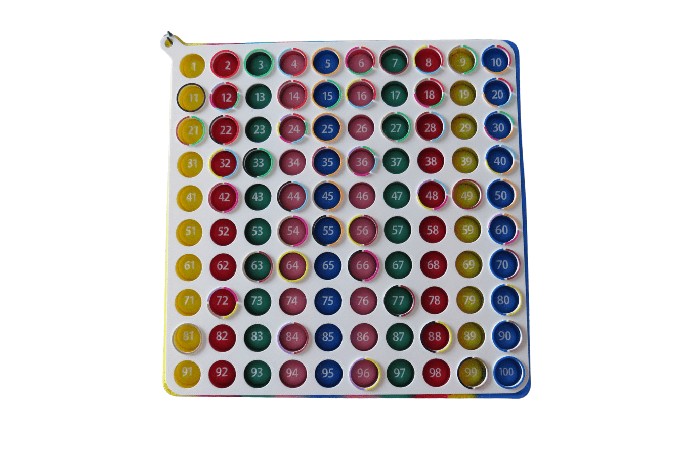 Used with the Primary NumeraSee 100 Square Popper, the Factor Frame overlay highlights the first 12 multiples of the numbers 2–12, each in its own distinct colour. This clever design helps learners to: